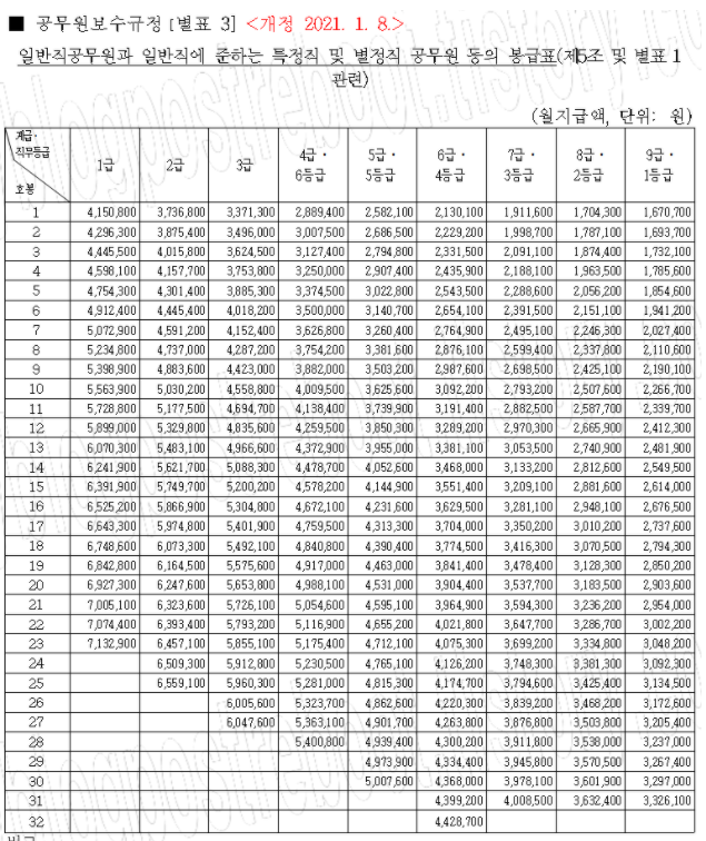 또 2021년의 공무원 연봉에 대하여 알아보았습니다.