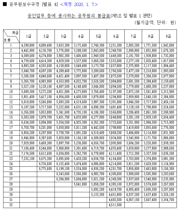 공안직 공무원의 7급 1호봉은 200만 5,200원,