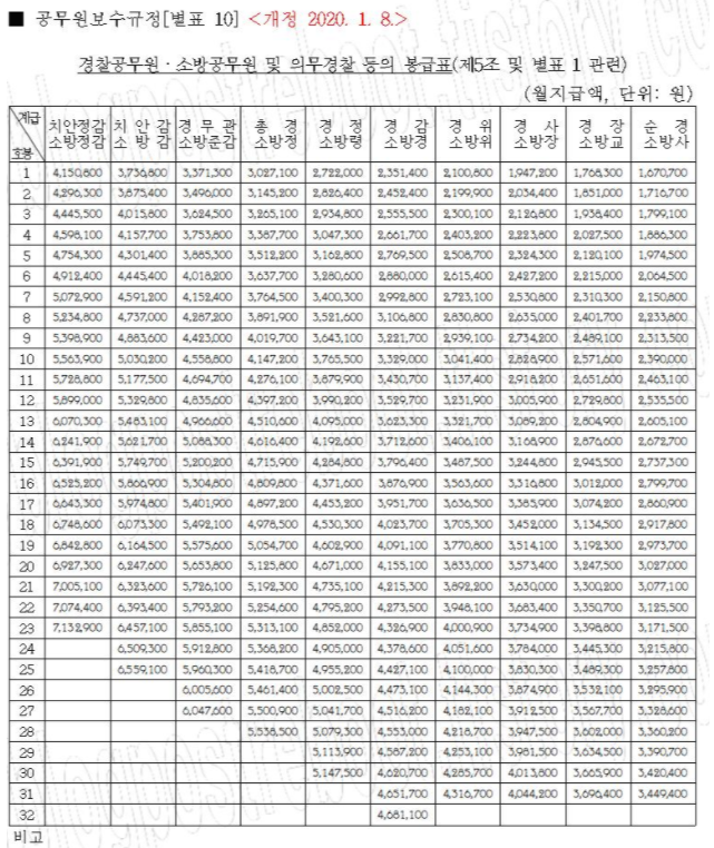 경찰 및 소방 7급 공무원의 연봉에 대해