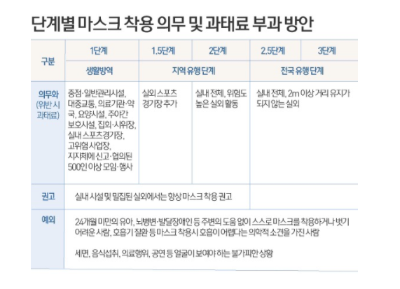 1단계부터 마스크 착용이 의무화 됩니다.