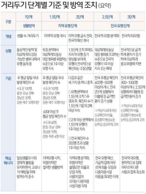사회적 거리두기 5단계의 기본적인 사항과