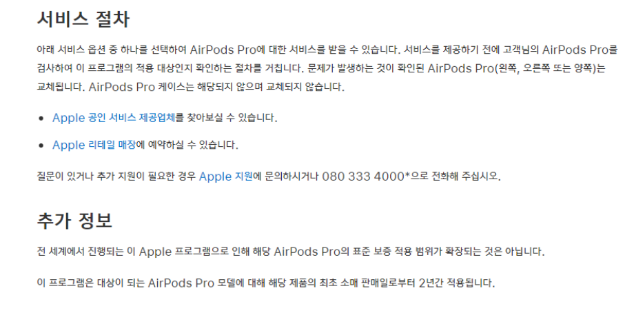 이번의 리콜 서비스가 에어팟 프로 보증 사항에 포함되며