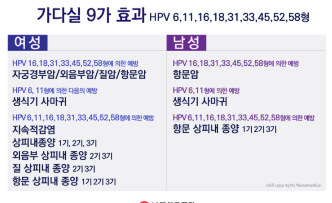 가다실은 4가 가다실과 9가 가다실로 나뉩니다.