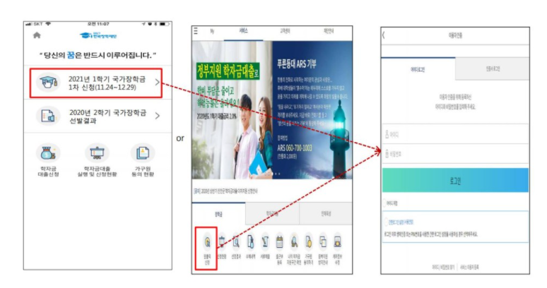한국장학재단 홈페이지에 접속하여 신청할 수 있고