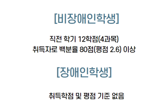 직전 학기에 12학점(4과목) 취득자여야 하고
