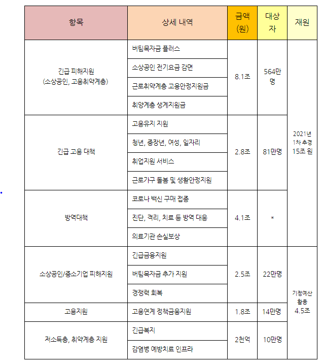 추가적인 4차 재난지원금 대상자별