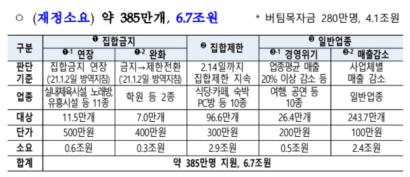 이번에 정부는 집합제한 업종 중