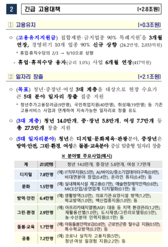 추가적으로 긴급 고용대책의 내용으로는