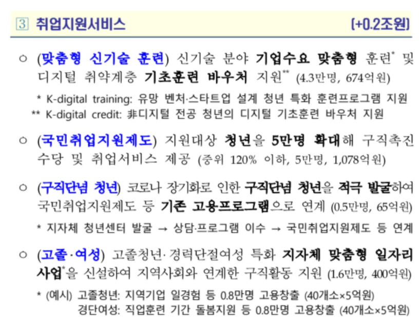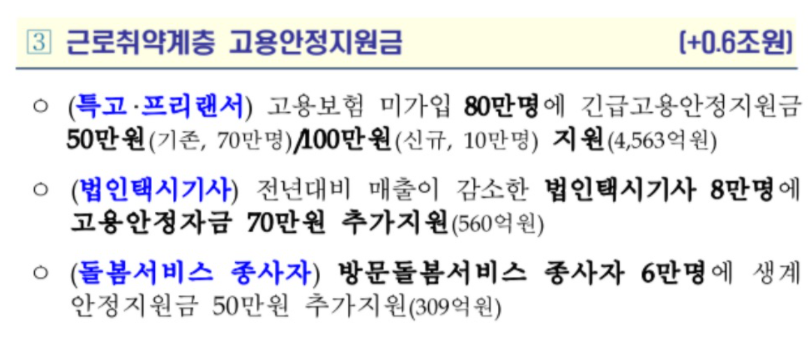 추가적으로 긴급 고용대책의 내용으로는