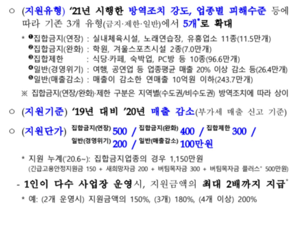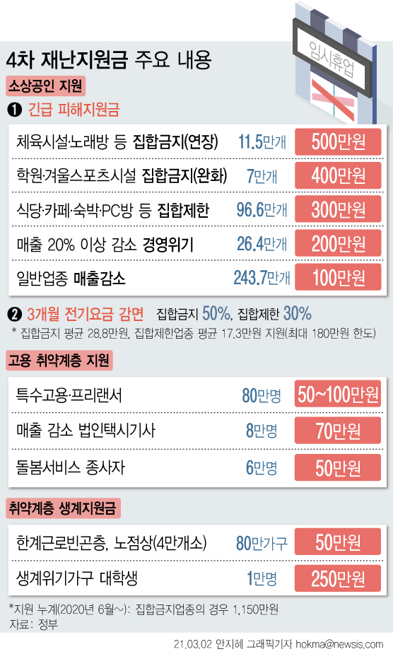 추가적인 4차 재난지원금 대상자별