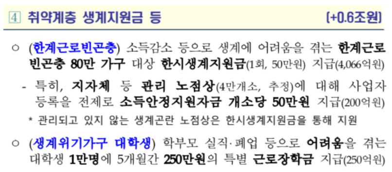 80만꾸에 한시생계지원금 1회 50만원 지급