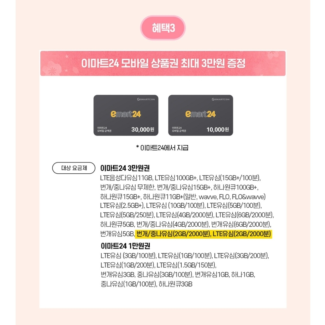 3. 이마트24 모바일 상품권 최대 3만원 증정