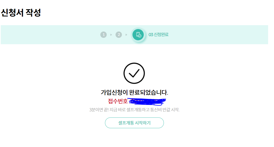 여기까지 하고 셀프개통 신청 버튼을 눌러주면