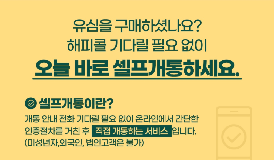 내가 직접 유심을 가지고 셀프개통 신청이 가능합니다.