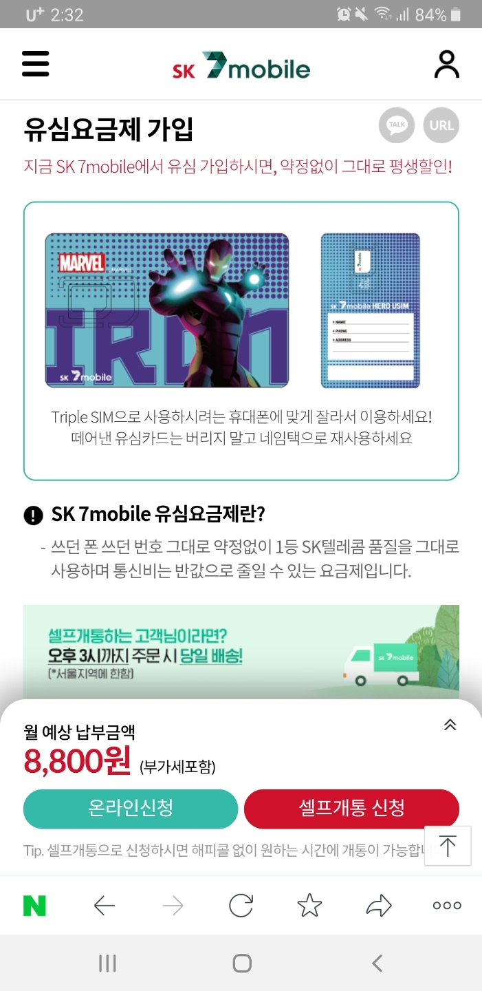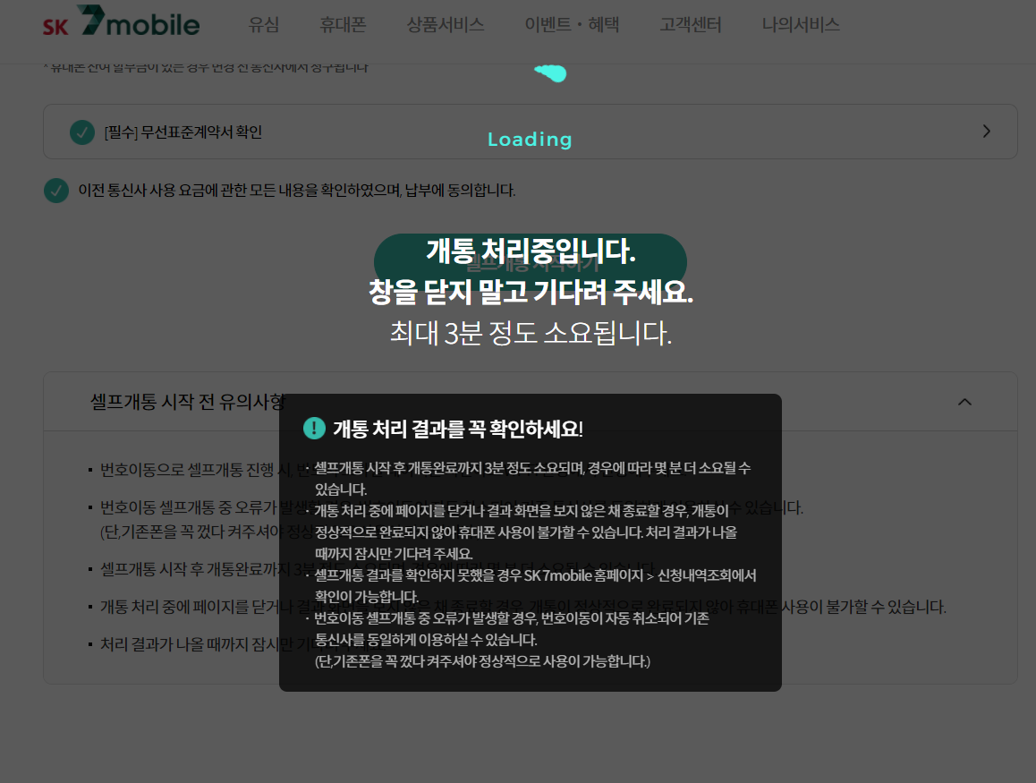 sk세븐모바일의 셀프개통 자세한 후기를