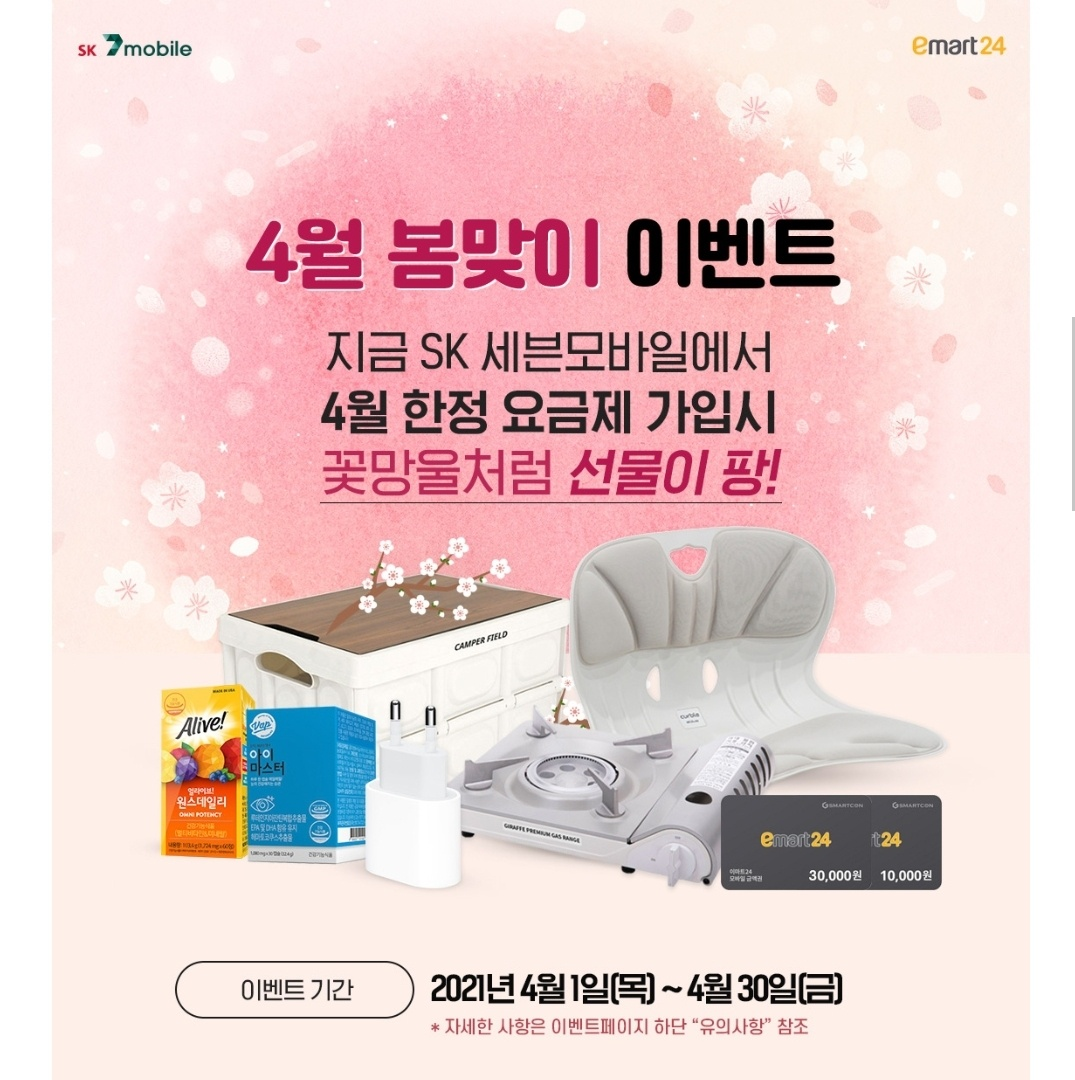 sk 세븐모바일의 4월 이벤트 소개해드리겠습니다.