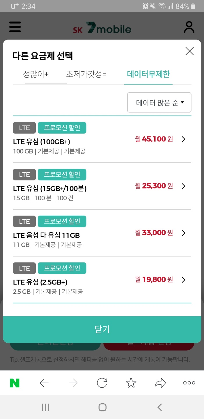 오늘 요금제를 바꾸기로 마음 먹고 찾아보았는데