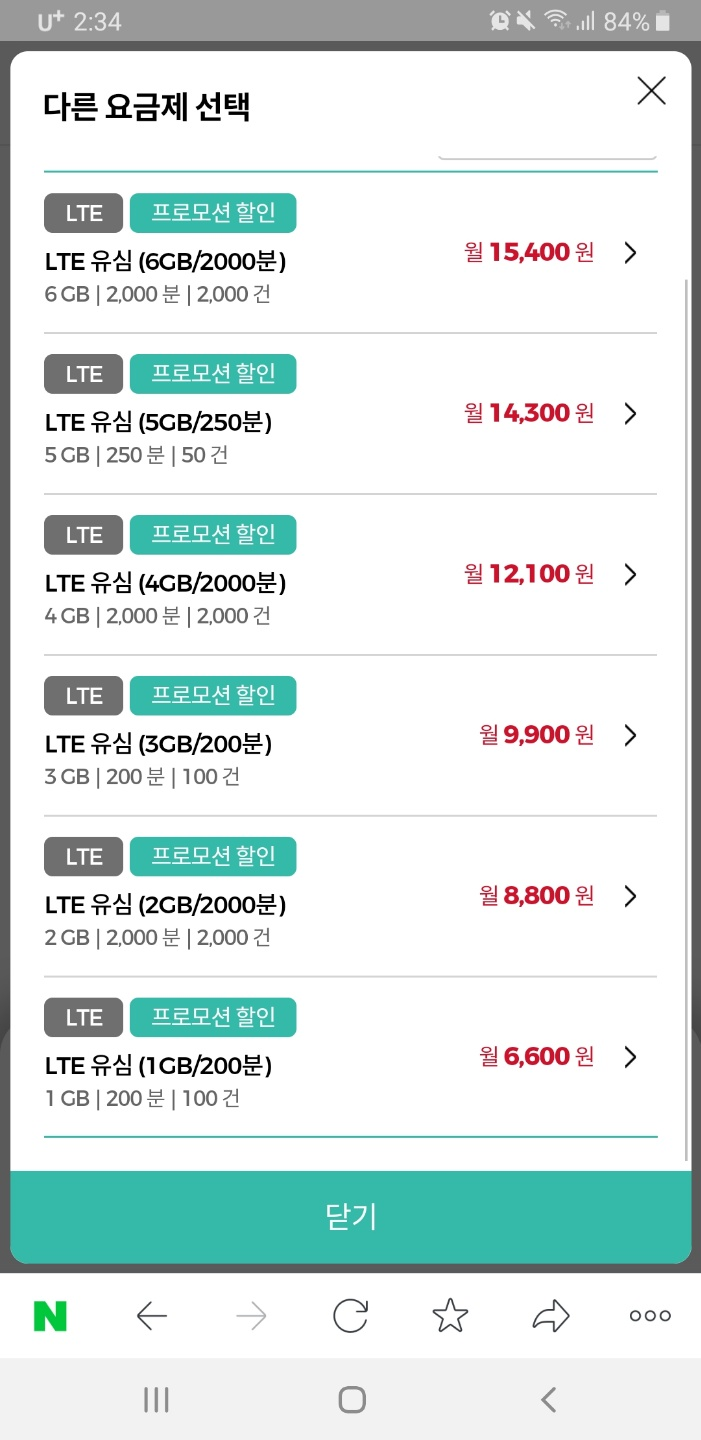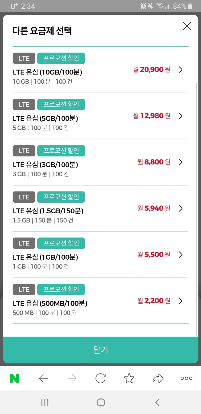 유플러스 알뜰모바일이라는 알뜰폰 요금제를 사용하다