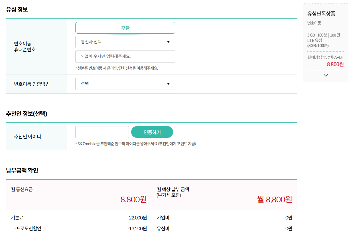 먼저 sk세븐모바일 알뜰폰 요금제 신청에는
