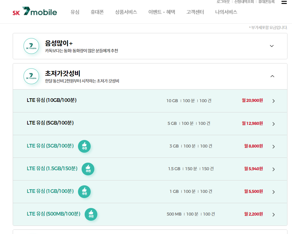 sk세븐모바일 알뜰폰 요금제로