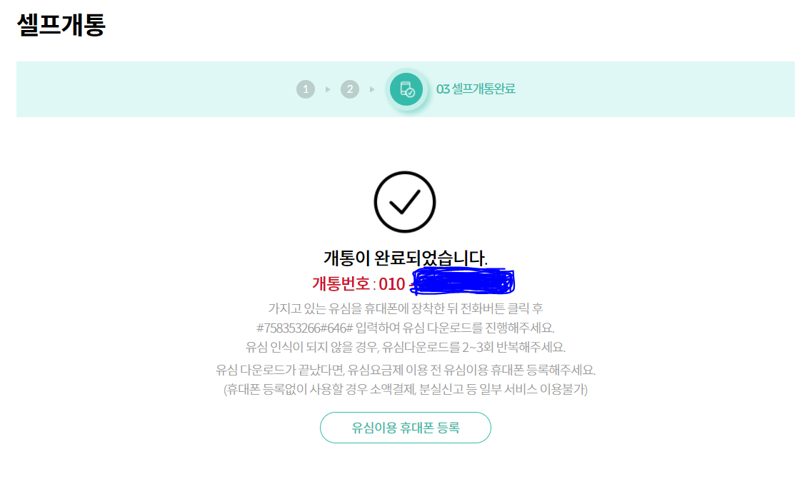 내가 직접 유심을 가지고 셀프개통 신청이 가능합니다.