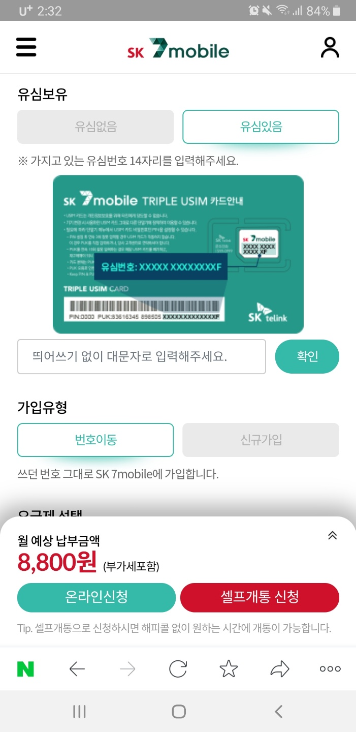sk세븐모바일의 셀프개통 자세한 후기를