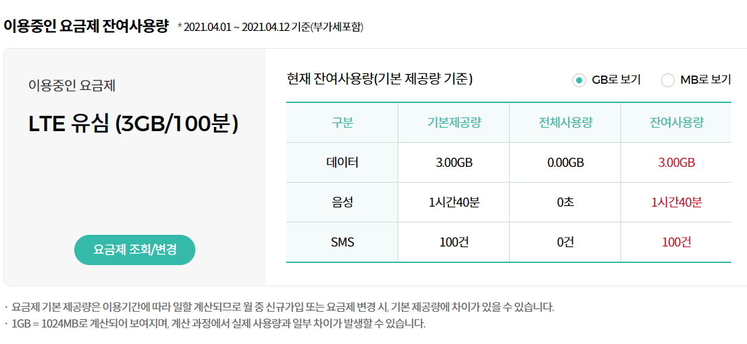 유플러스 알뜰모바일이라는 알뜰폰 요금제를 사용하다