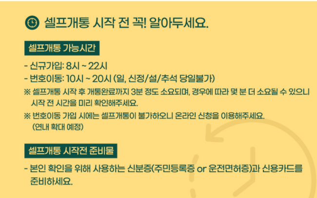 '셀프개통 신청' 방법을 이용하기로 하였습니다.