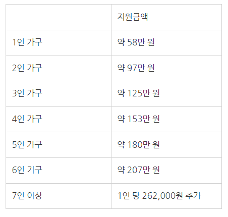 4인 가구는 기존에 130만원 지원을 받았지만
