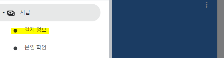 스크롤을 내려 '결제 수단 관리'를 클릭합니다.