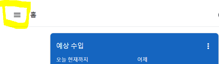 좌측상단 세줄을 눌러 메뉴로 이동합니다.