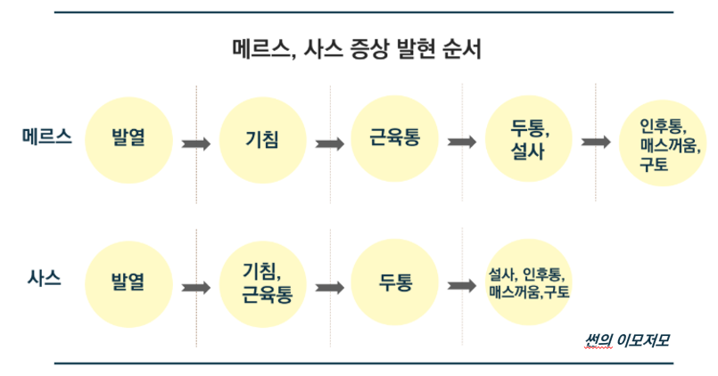 그 중간에 인후통, 두통, 피로 등 다른 증상이