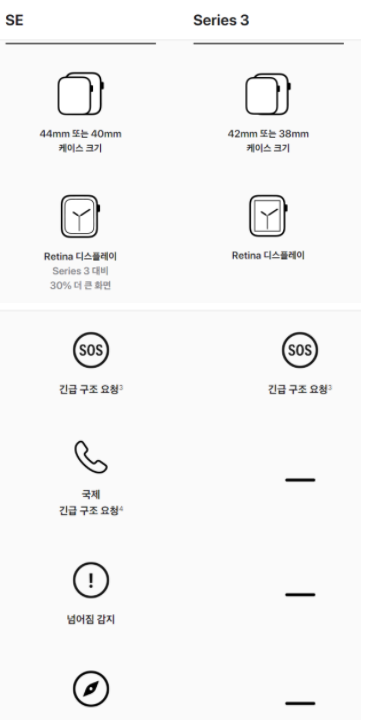 ◎애플워치SE, 3세대와의 차이점