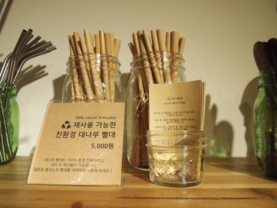 종이 빨대를 사용하는 카페가 많아지고 있고