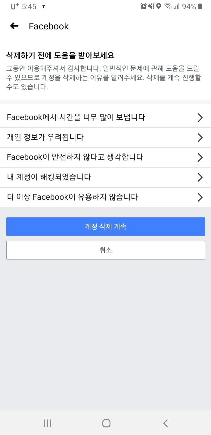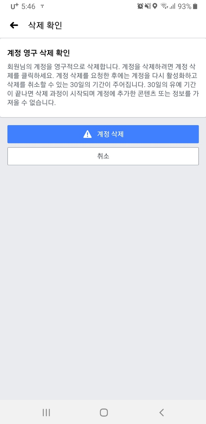 이제 정말 페이스북 계정 탈퇴 완료입니다.