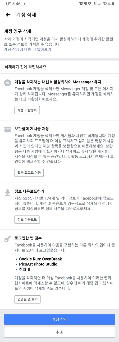 ◎페이스북 탈퇴 및 비활성화