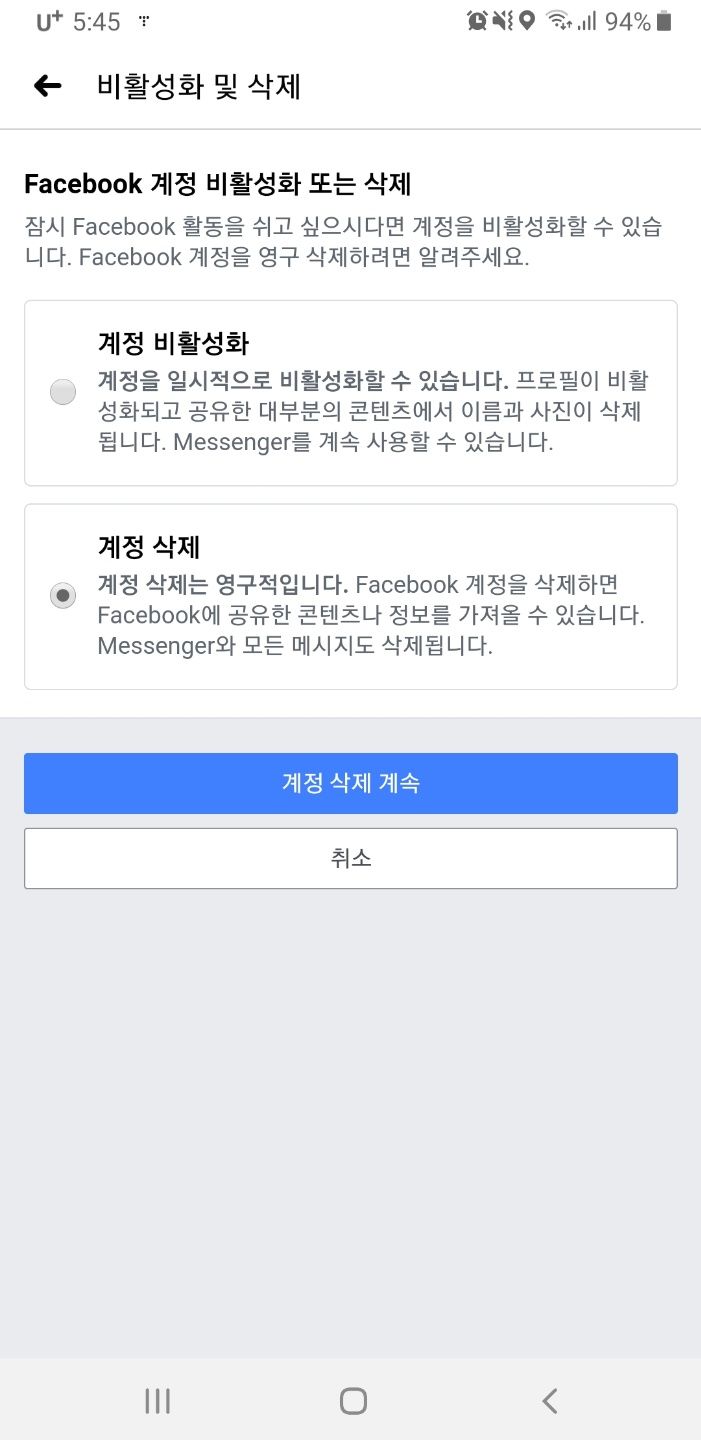 페이스북 계정 비활성화를 하시려는 분들도