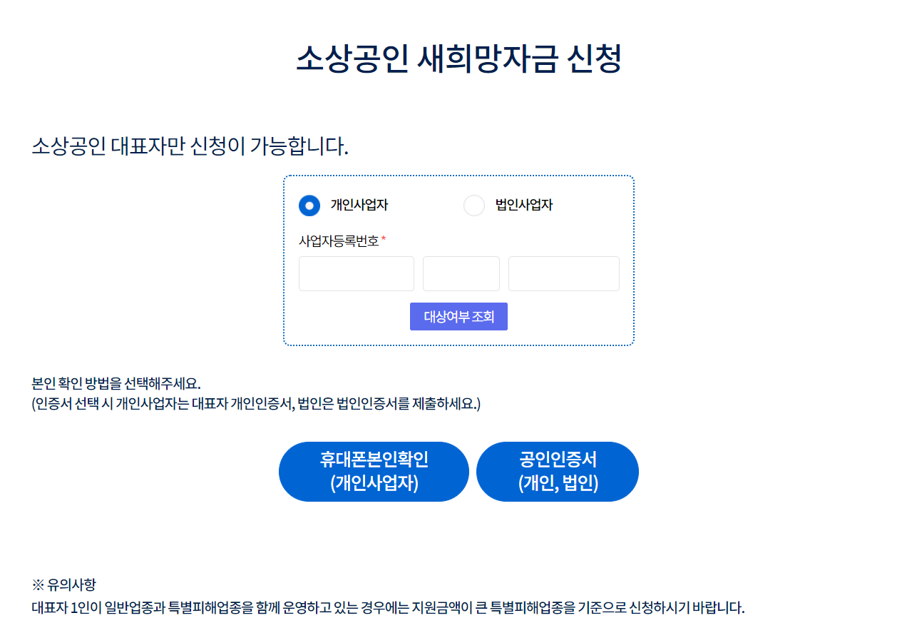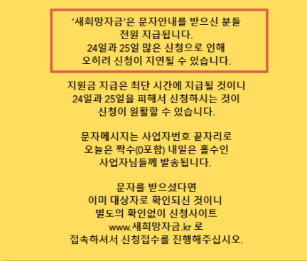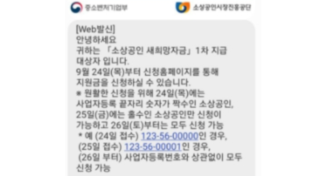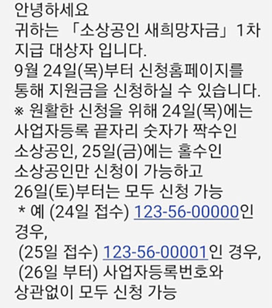 문자를 받지 않은 소상공인도 사업자번호를 통해