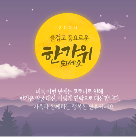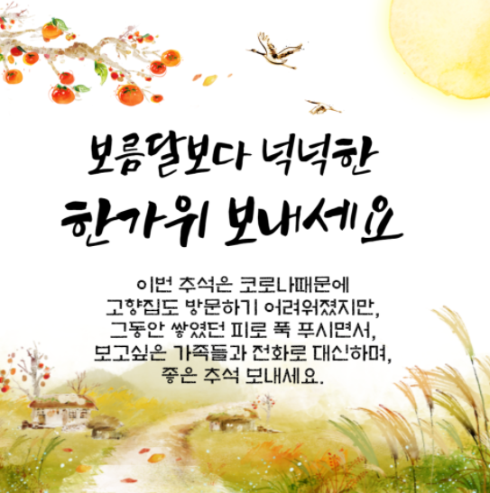 2020년 한가위는 집에서 마음을 전하며 즐겁게 보내세요.