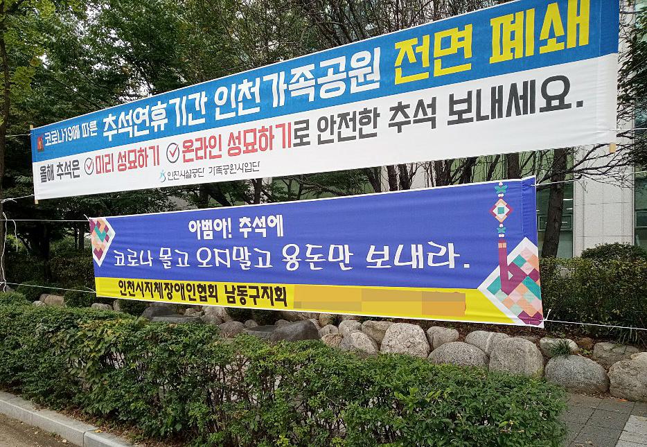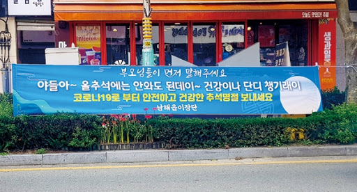 추석기분을 내는 현수막의 문구도