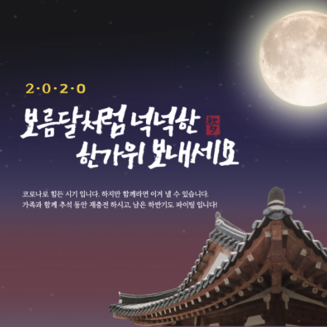 → 2020년 한가위는 집에서 마음을 전하며 즐겁게 보내세요.