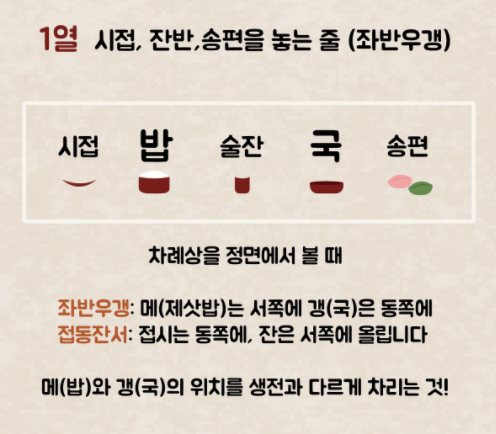 좌측에는 밥, 우측에는 국을 올린다는 의미입니다