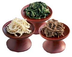 왼쪽부터 포, 나박김치, 삼색나물,