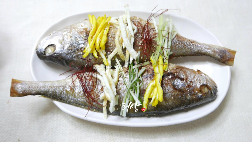 이때 생선 머리는 오른쪽을 향하게 해야 합니다.