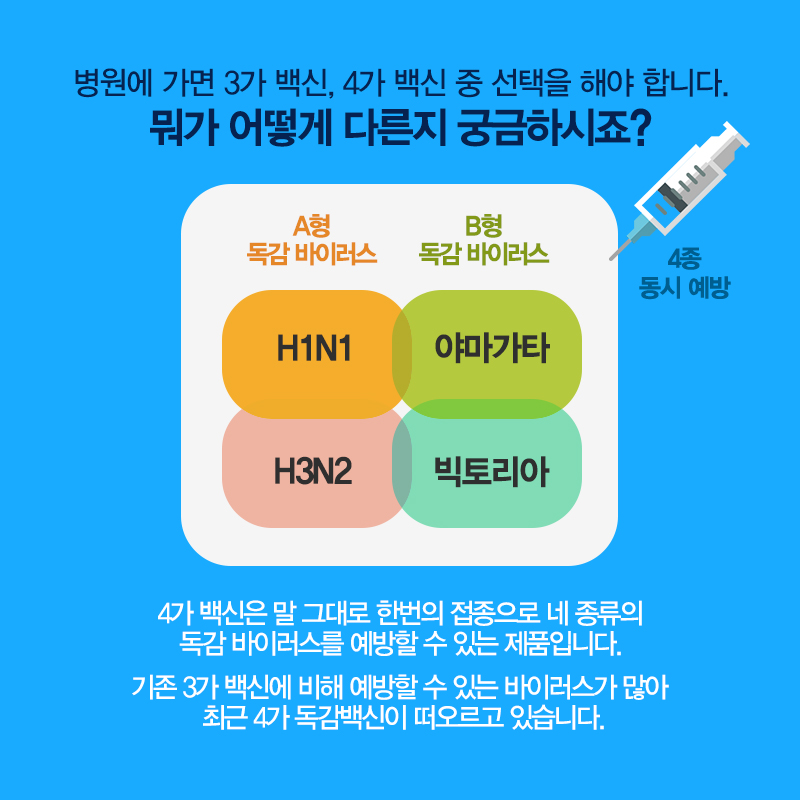 그럼 3가 독감주사와 4가 독감주사는 뭐가 다를까요?