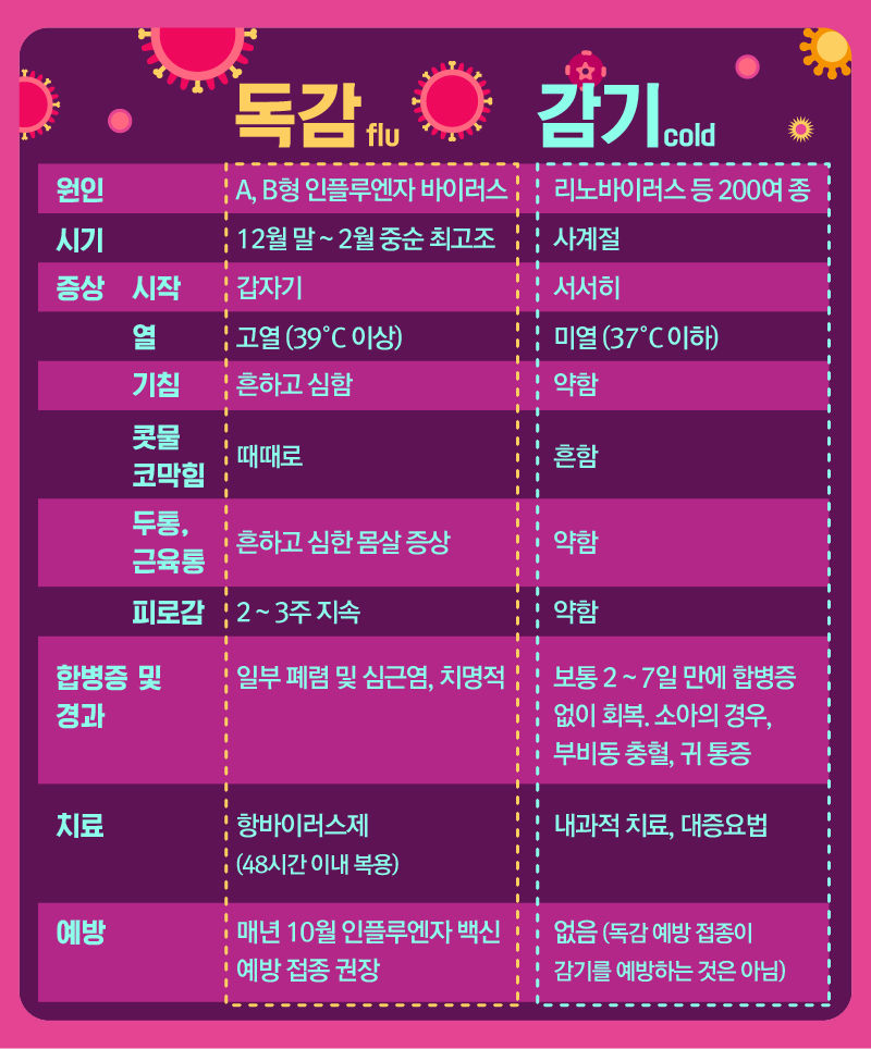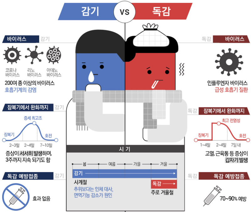 독감과 감기의 차이에 대해 간단히 알아보자면