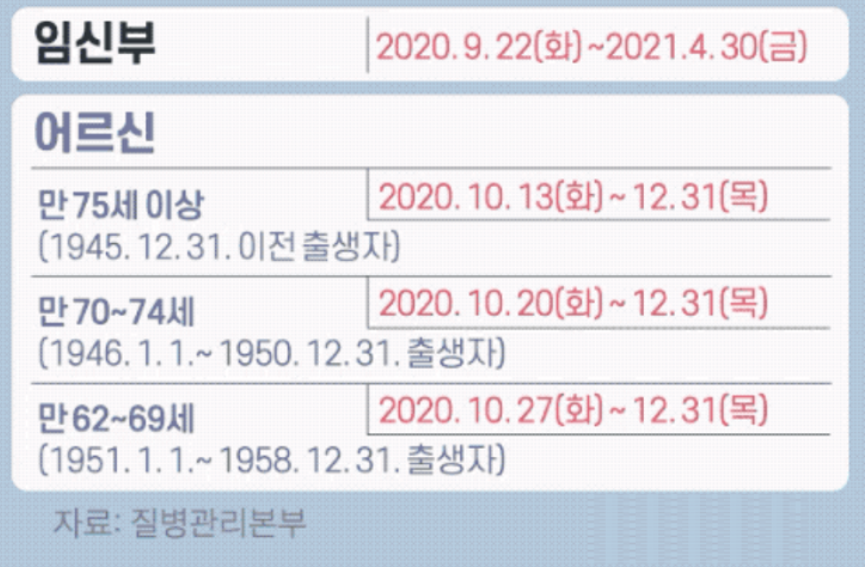 만 62~69세는 2020년 10월 27일부터 2020 12월 31일까지