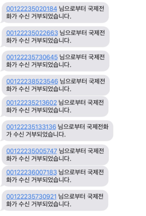 에 들어가서 국제 전화 수신을 막아두면 됩니다.