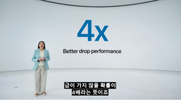 기존 액정에 대비해서 낙하 내구성이 4배 증가했고