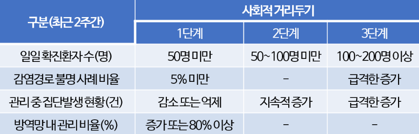 여기까지 사회적 거리두기 단계에 따른